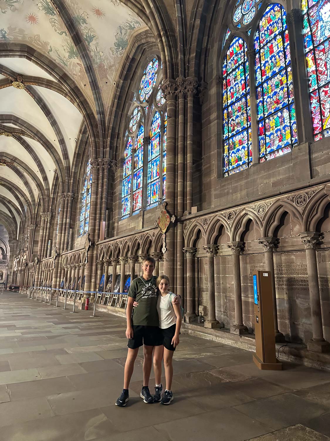 Our perfectly located two-bedroom apartment in the heart of the old city provided an ideal base for daily adventures, allowing us to walk to virtually every major attraction while experiencing authentic neighborhood life. We strategically arrived early each morning at the breathtaking Gothic Strasbourg Cathedral to be among the first visitors inside this magnificent 1,000-year-old masterpiece. The kids were absolutely mesmerized by the enormous astronomical clock with its intricate moving figures, the spectacular rose window and stained glass panels that cast rainbow light throughout the interior, and they even discovered a tiny bat hiding on one of the ancient stone walls during our thrilling tower climb that rewarded us with spectacular panoramic views across the city's red-tiled roofs and the Rhine valley beyond.