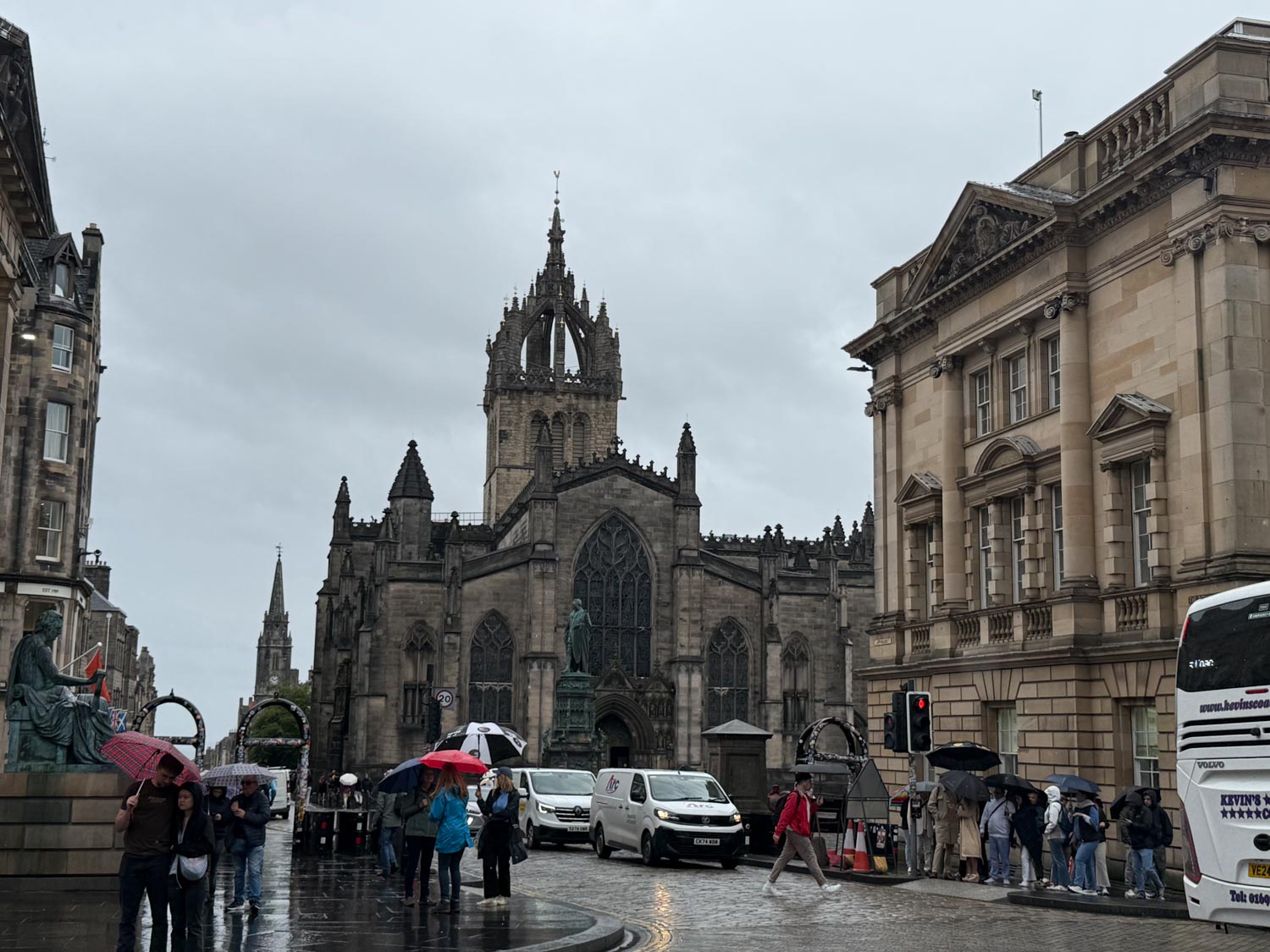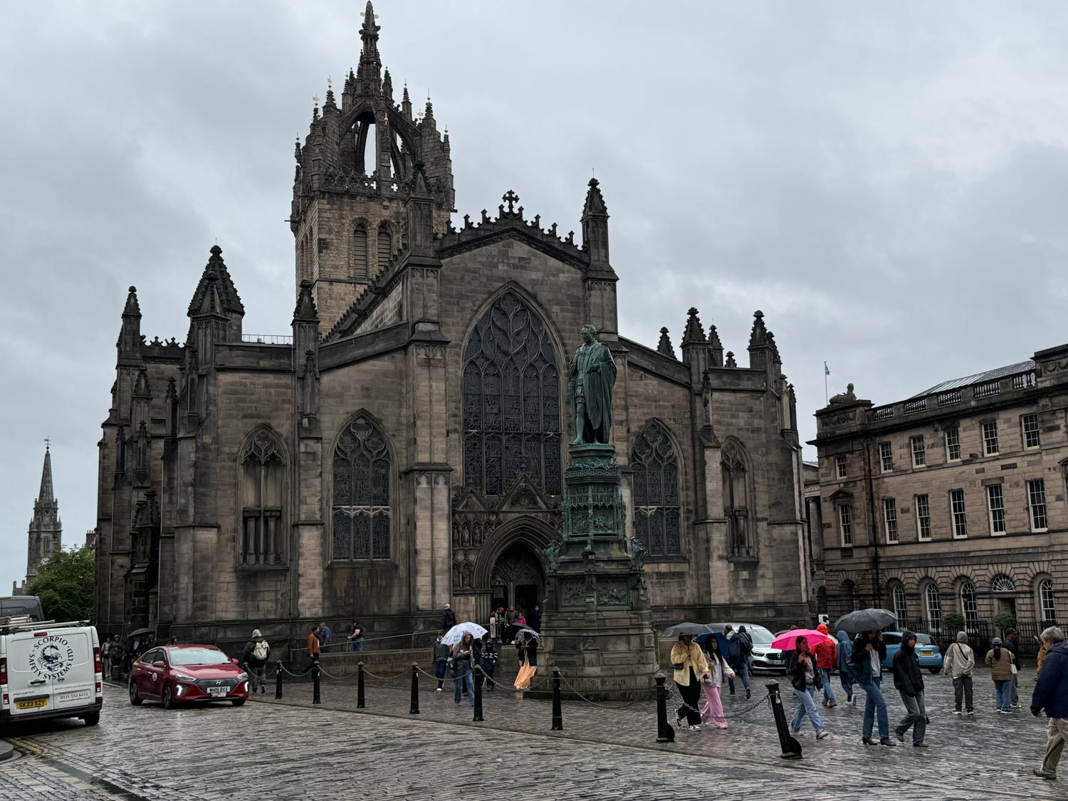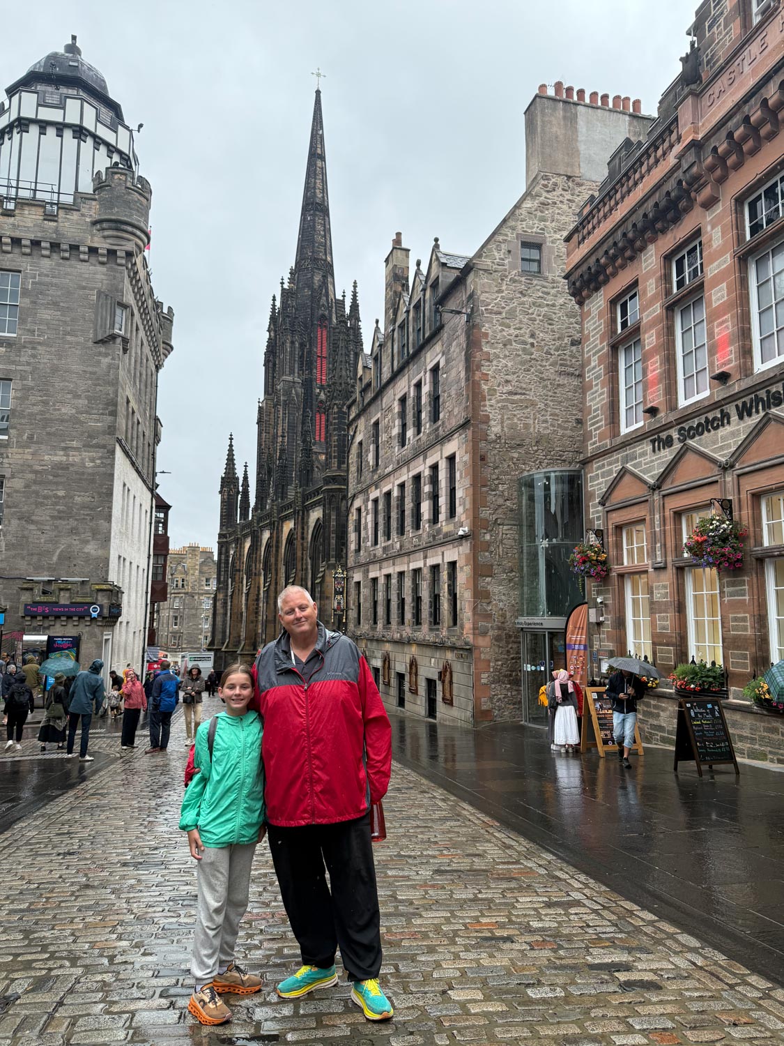 Unfortunately, the Scottish weather decided to provide us with an authentically atmospheric Edinburgh experience, as it was raining pretty much throughout our entire day in the city. However, rather than dampening our spirits, the persistent rain only added to the mystical and romantic atmosphere that Edinburgh is famous for, creating misty, atmospheric conditions that made the ancient stone buildings and narrow medieval streets appear even more dramatic and evocative than they might have under clear skies.