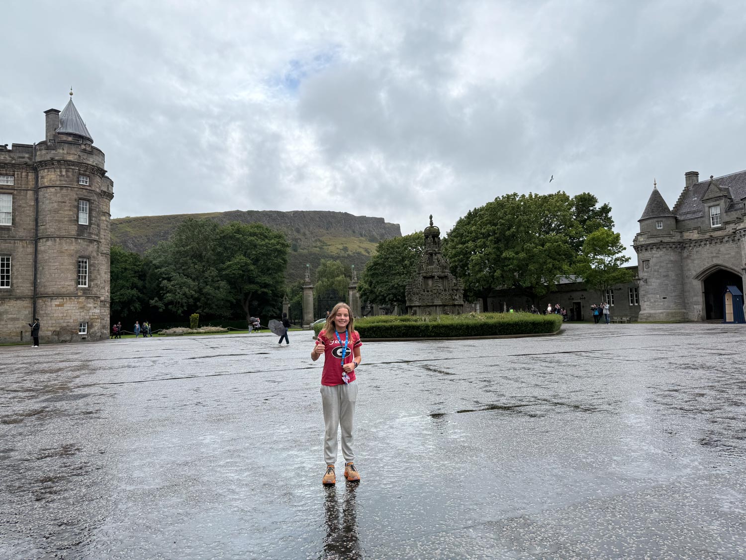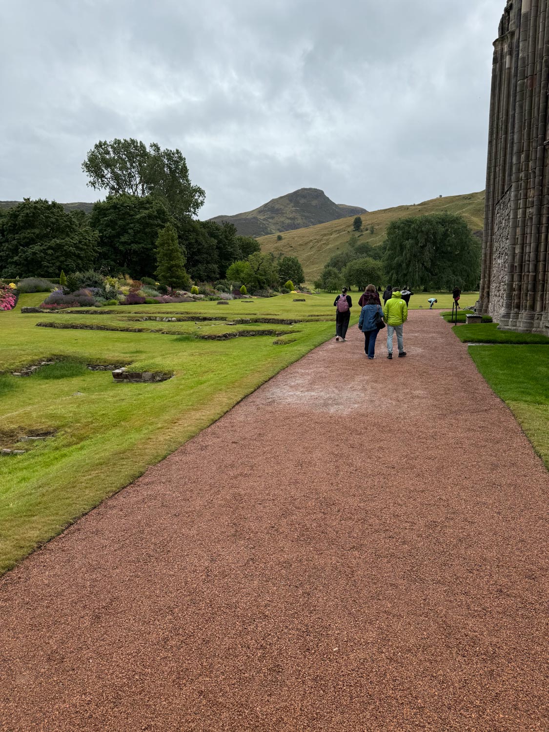 The palace gardens proved to be another highlight of our visit, despite the persistent rain that continued throughout our exploration. These beautifully maintained grounds, with their carefully planned landscapes, ancient trees, and stunning views of Arthur's Seat, provided a peaceful and contemplative space where we could reflect on all the history we had absorbed while enjoying the natural beauty that surrounds this remarkable royal residence.