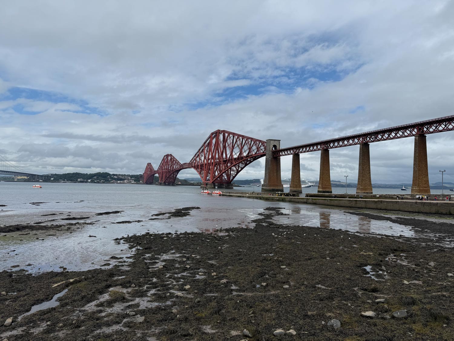 Our Edinburgh adventure began with another exciting tender experience as we made our way from our cruise ship to the charming and historic port town of South Queensferry. This picturesque small town, nestled along the shores of the Firth of Forth, provided us with our first glimpse of Scotland's capital region and served as the perfect gateway to one of Europe's most magnificent and historically significant cities. The tender ride itself offered spectacular views of the iconic Forth Bridge, one of Scotland's most recognizable engineering marvels, creating an appropriately dramatic introduction to our Scottish capital exploration.
