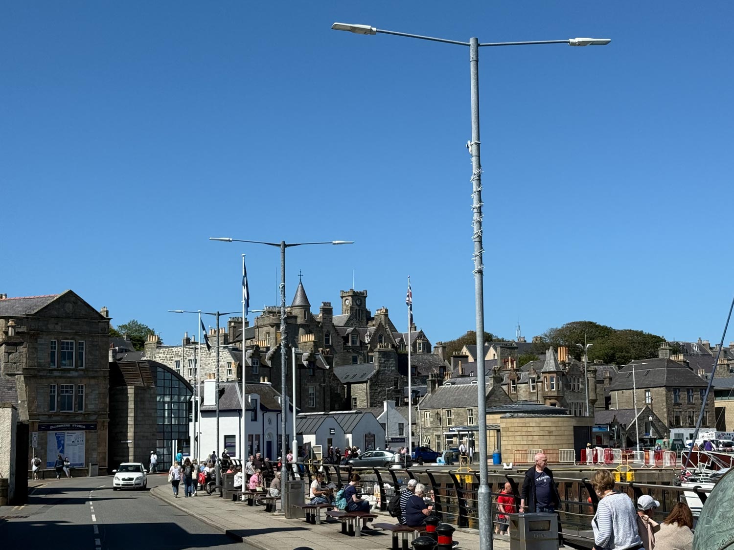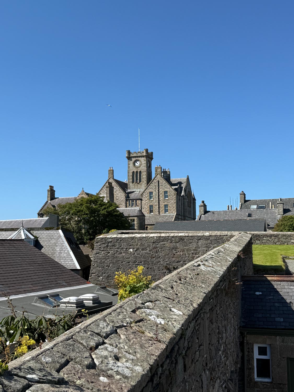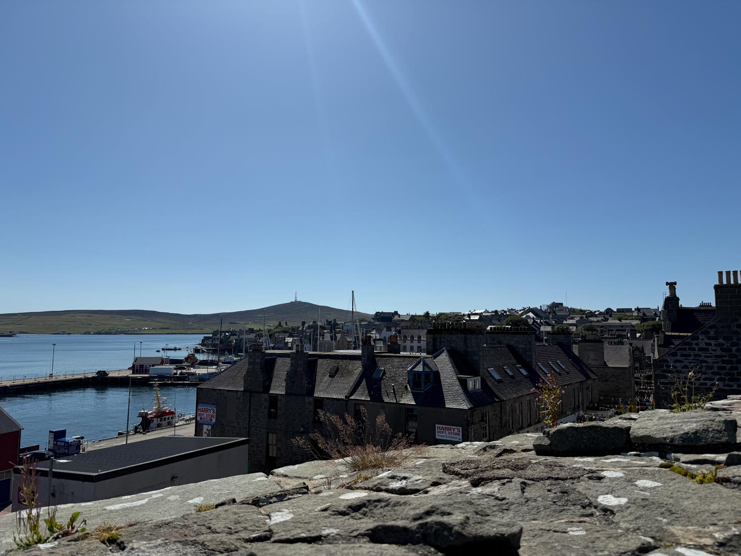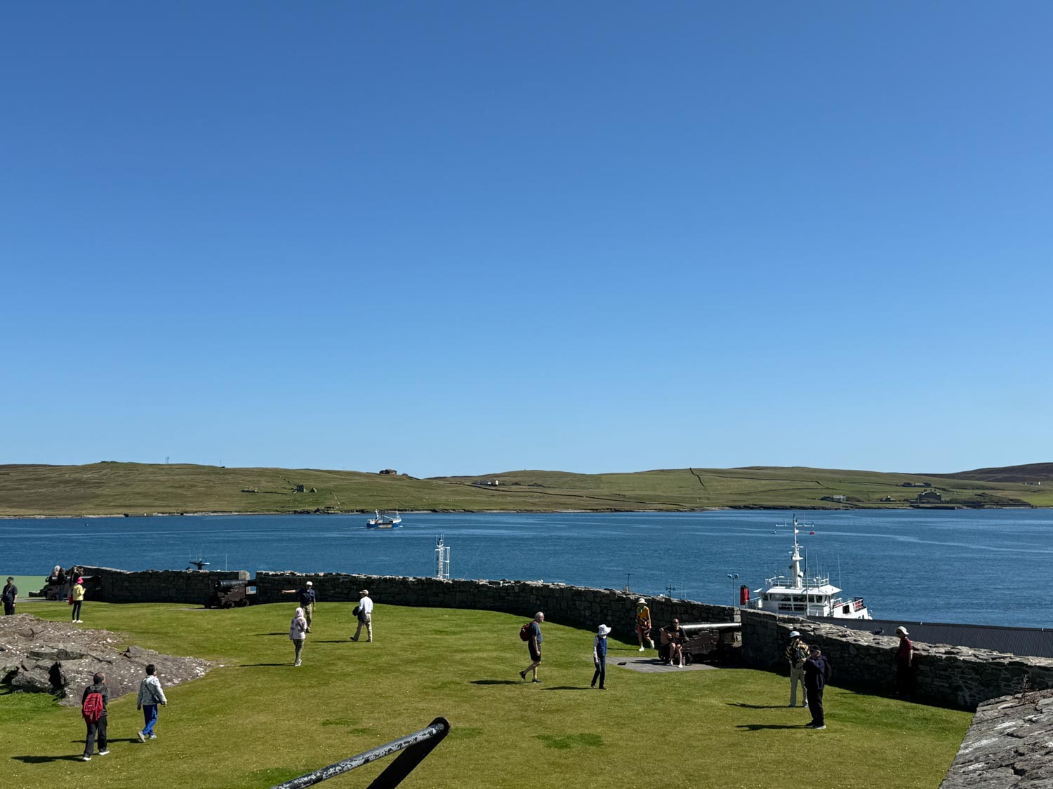 After our enlightening museum visit, we embarked on a pleasant walk up to the historic fort that overlooks the town and harbor. The climb was well worth the effort, as the fort provided spectacular panoramic views across Lerwick and the surrounding islands. From this elevated vantage point, we could fully appreciate the strategic importance of this location throughout history, as well as the stunning natural beauty of the Shetland landscape with its rolling hills, dramatic coastlines, and crystal-clear waters that stretched to the horizon.