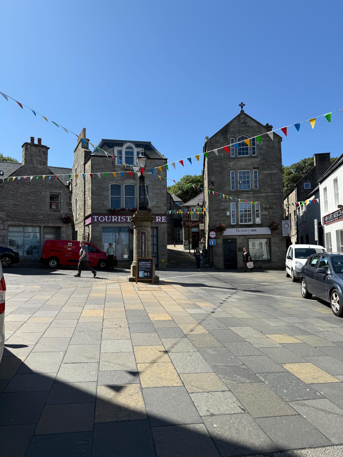 We began our exploration by wandering through the town's quaint streets, taking in the unique architecture that reflects centuries of Nordic and Scottish influences. The buildings, many constructed from the distinctive local stone, told the story of Shetland's rich maritime heritage and its strategic position between Scotland and Scandinavia. Our first major stop was the excellent local museum, where we spent a considerable amount of time learning about the islands' remarkable history, from their Norse origins to their crucial role in both World Wars and their thriving modern industries including fishing, oil, and the famous Shetland wool production.