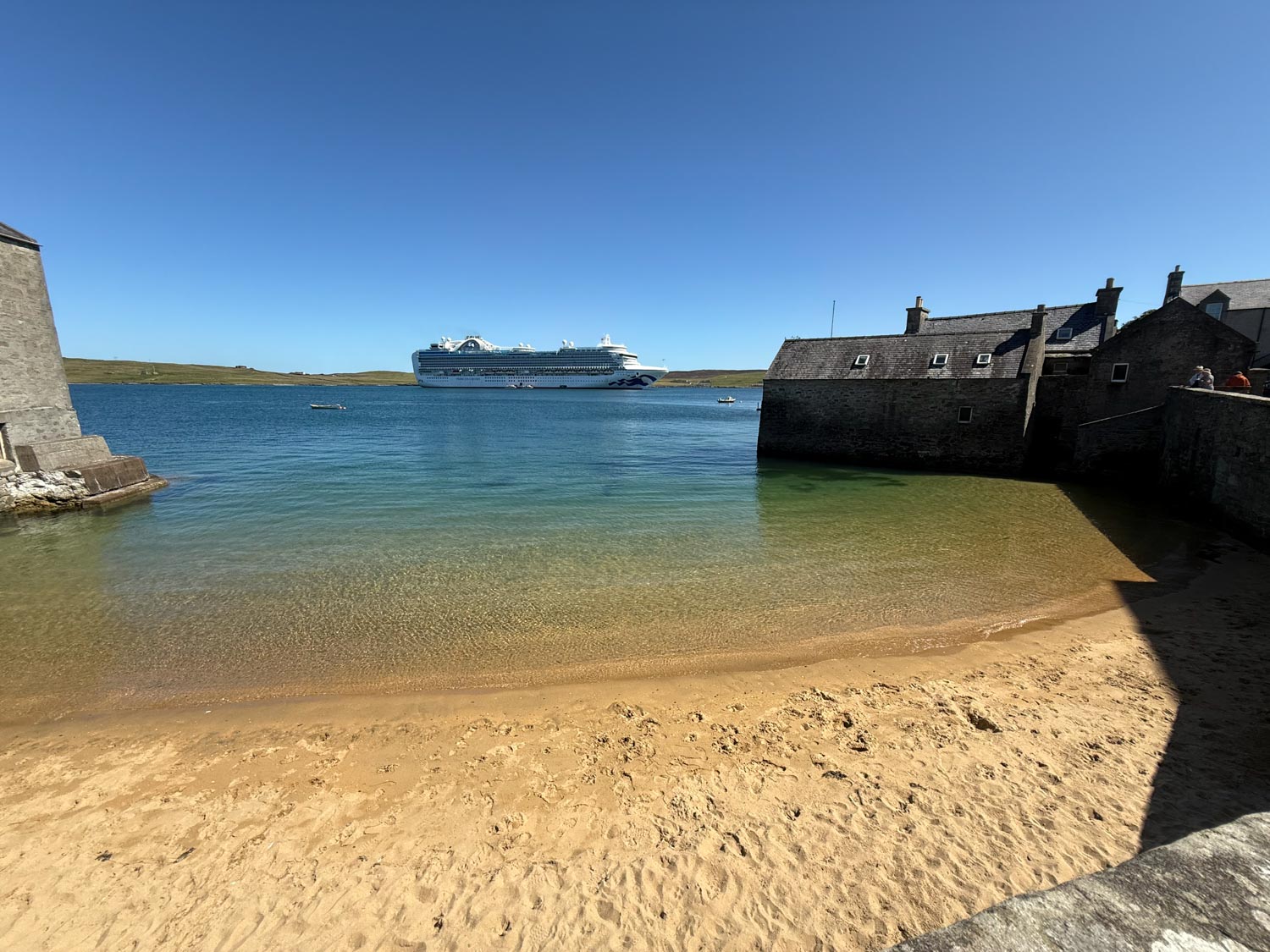 Our Shetland Islands adventure began with the unique and exciting experience of a tender day, where we had to take smaller boats from our cruise ship to reach the picturesque port town of Lerwick. The tender ride itself was an adventure, offering us stunning views of the rugged Shetland coastline and providing our first glimpse of this remote and enchanting archipelago that sits at the northernmost tip of Scotland, closer to Norway than to Edinburgh.